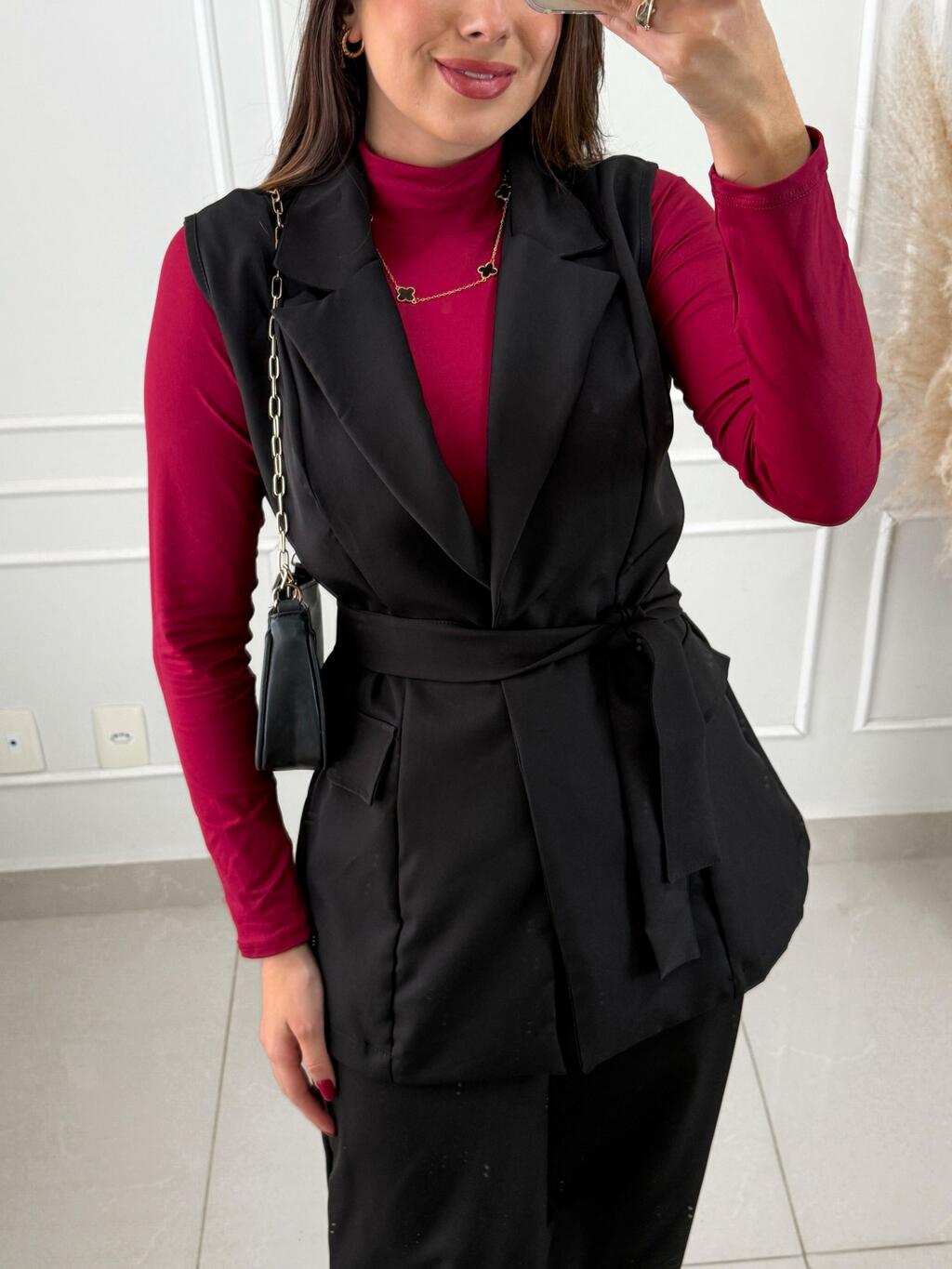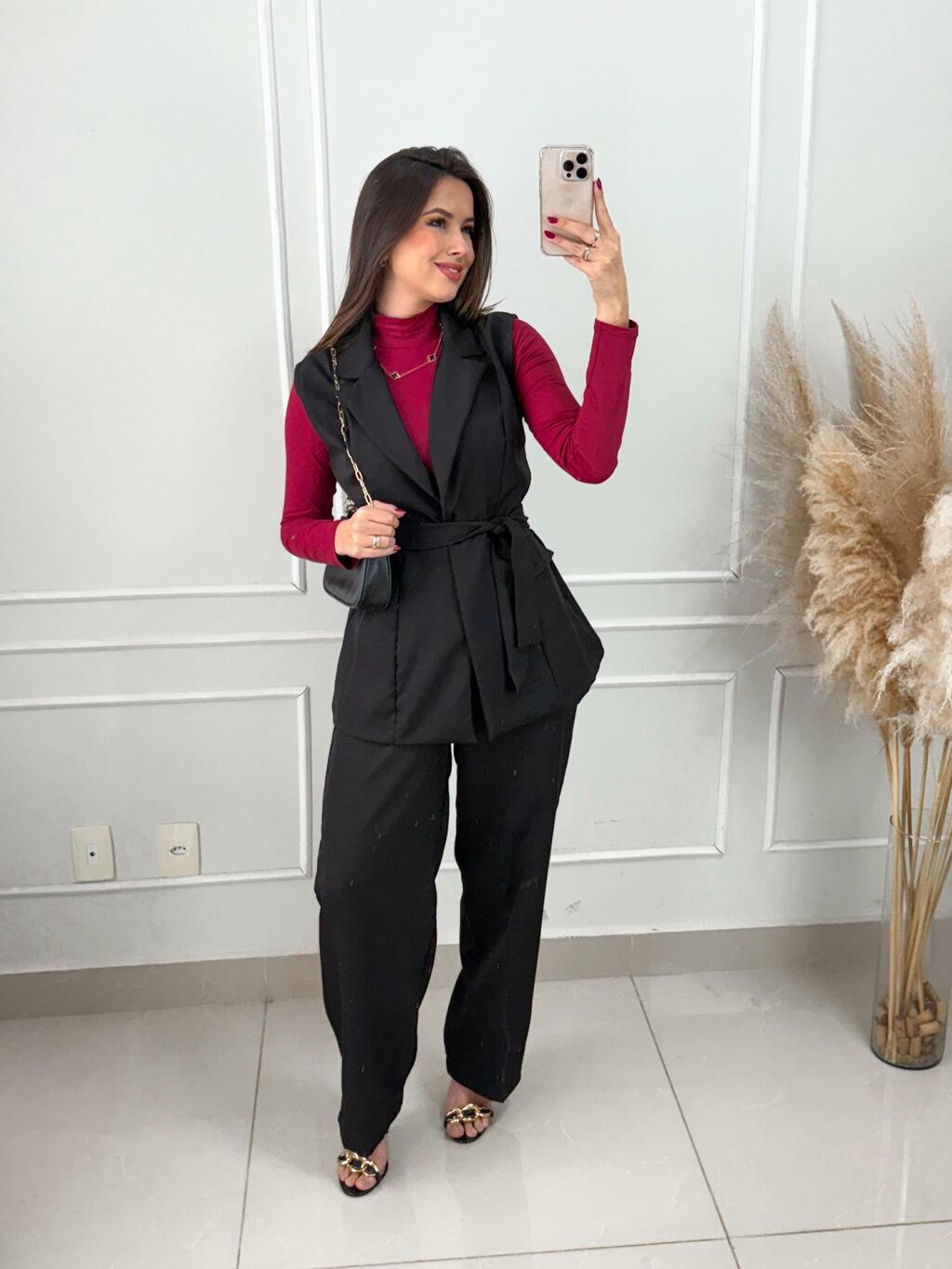 Este Conjunto de Alfaiataria é a escolha perfeita para quem busca sofisticação e versatilidade. O colete possui um elegante botão encapado e acompanha um cinto separado, ambos feitos em tecido de alfaiataria de alta qualidade. O cinto pode ser usado de forma independente, permitindo uma combinação de estilos diferentes. O conjunto veste do tamanho 36 ao 42 e a calça, também em alfaiataria, conta com elástico nas costas, proporcionando um ajuste confortável e perfeito ao corpo. Ideal para quem deseja um visual moderno e elegante."
